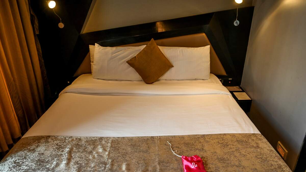 66% voted for sharing a bed with their partner . . . 7% picked separate beds in the same room . . . and 10% picked separate beds in separate rooms.